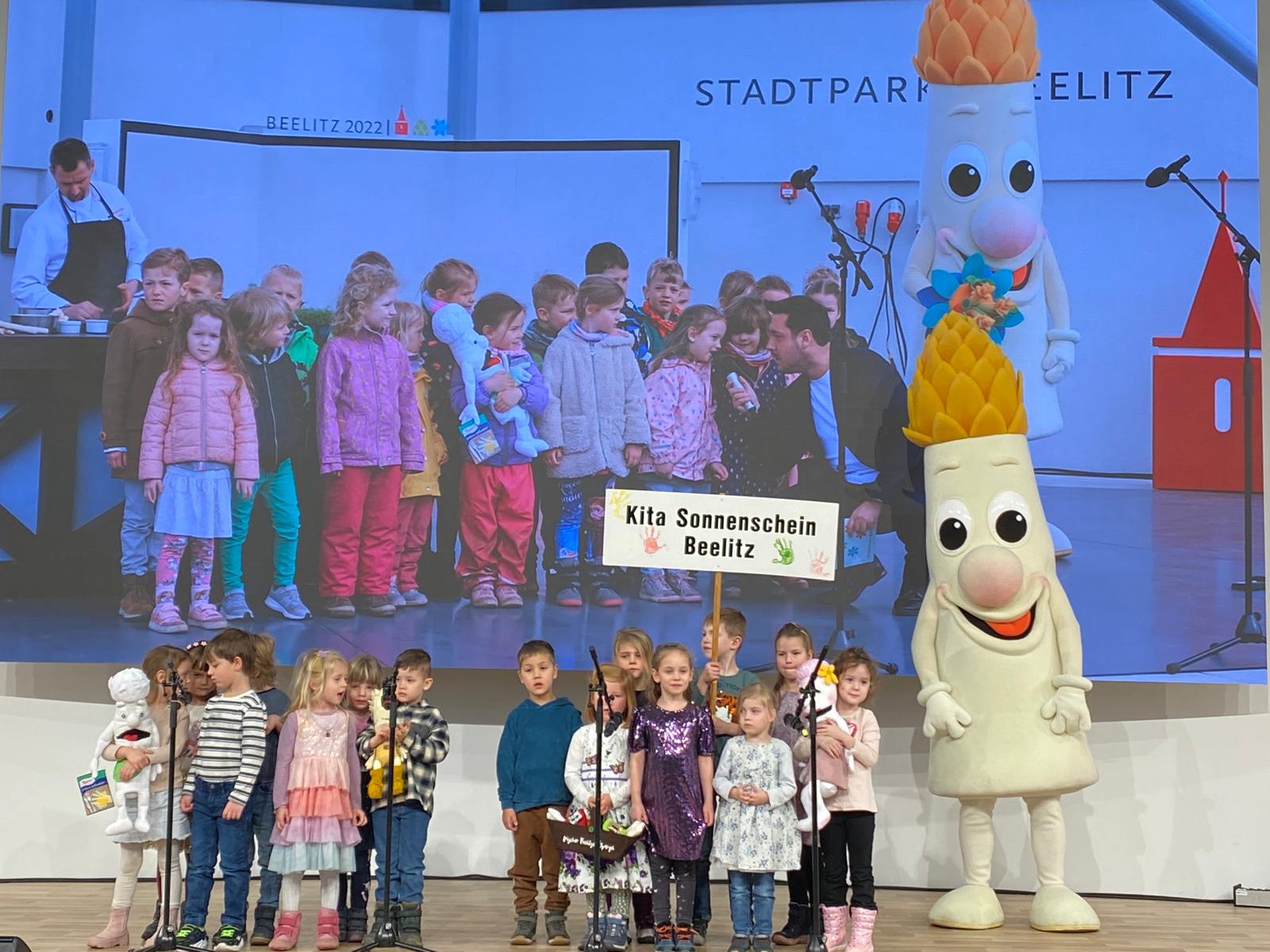 Aufgeregt wurde hinter den Kulissen noch mal geübt und gespannt gewartet, wann es los ging. Die Kinder haben mit Spargelino auf der Bühne gestanden und unser Spargellied gesungen. Vielen lieben Dank für die liebe Unterstützung aller Beteiligten.