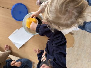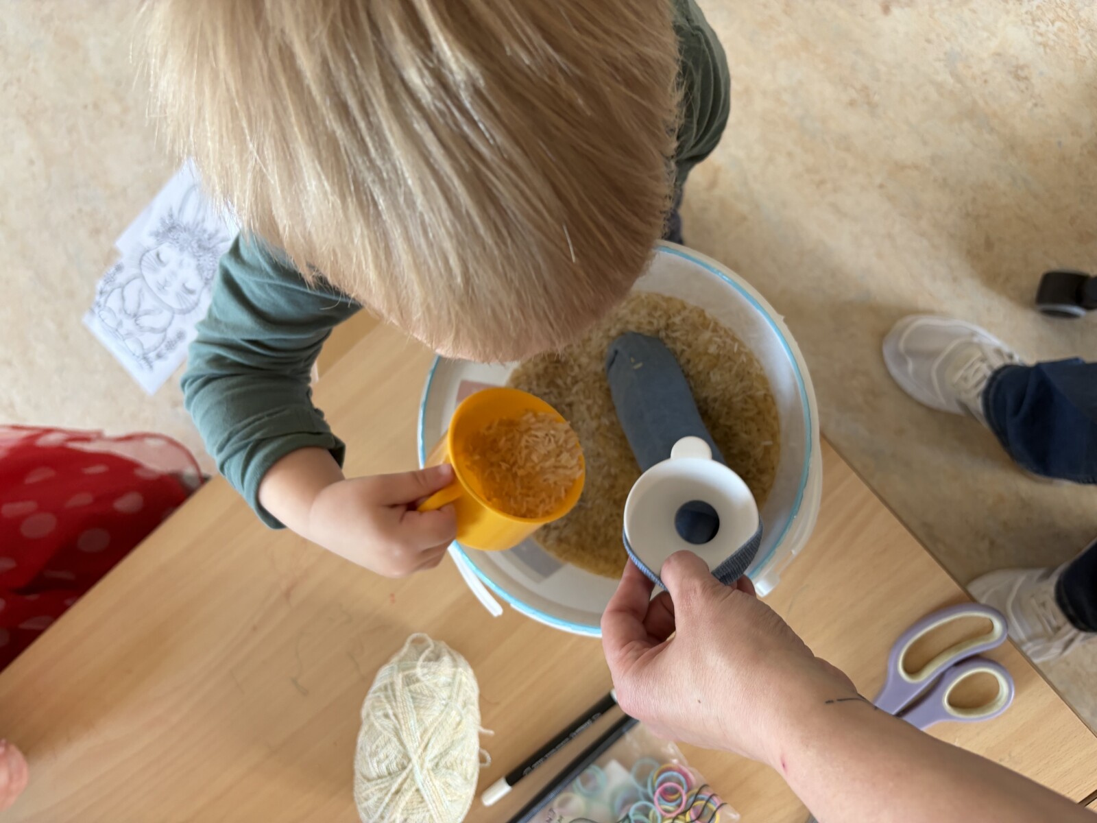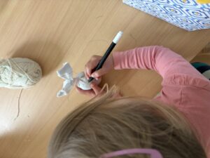 Neben dem Spaß am Gestalten standen auch wichtige pädagogische Ziele im Mittelpunkt des Angebots. Durch das Befüllen und Abbinden der Socke wurde die Feinmotorik der Kinder gezielt fördert. Gleichzeitig konnten sie ihre kreativen Ideen einbringen und eigenständig umsetzen. Auch soziale Kompetenzen wurden gestärkt, da die Kinder sich gegenseitig unterstützten und gemeinsam arbeiten konnten.